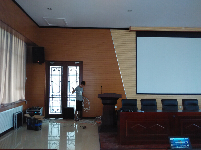 體院高爾夫球場大型會議室采用2只主擴音響MDD215美國JBL音響、MDD212 4只補聲音箱、皇冠功放3臺、SHARP 夏普6500流明工程投影機一臺、本會議室采用數(shù)字無線手拉手美鐳會議系統(tǒng)、通過一臺數(shù)字抑頻器,自動反饋抑制聲反射,提高試音增益,輕松發(fā)言使整個會場語言清晰無嘯叫。