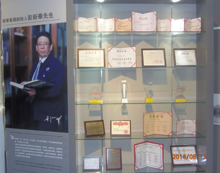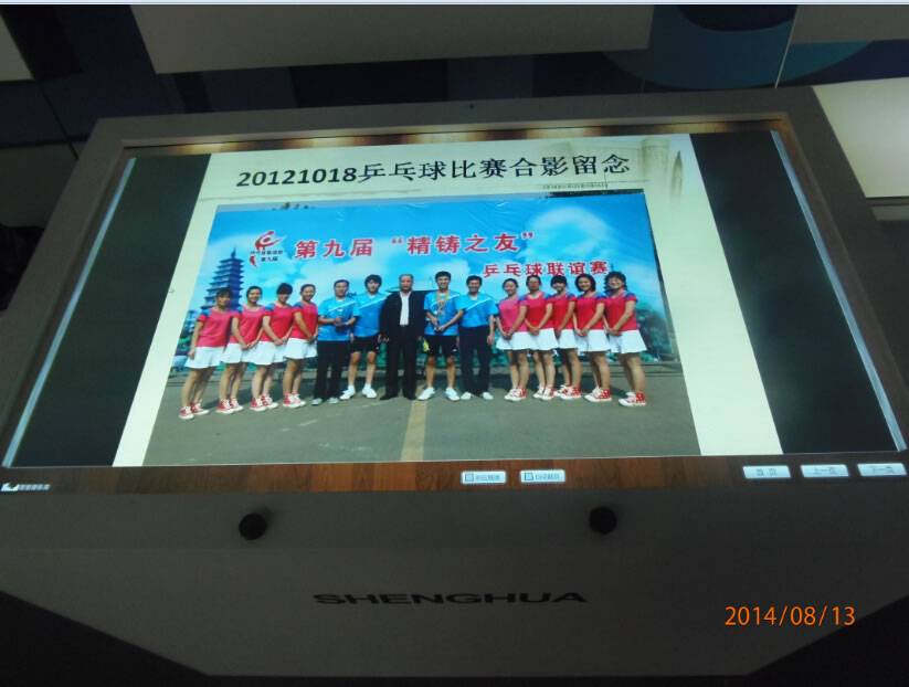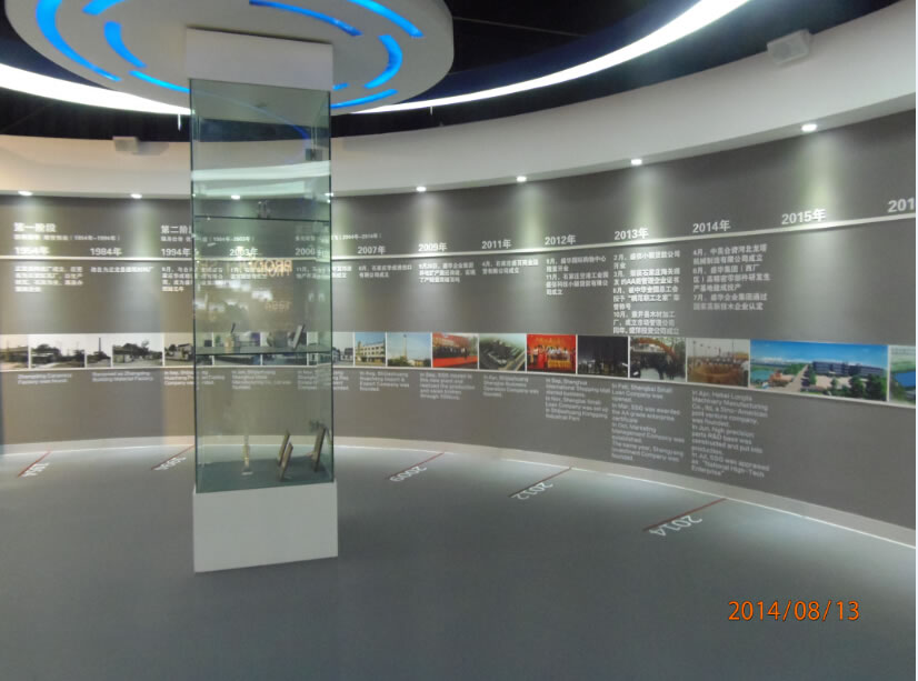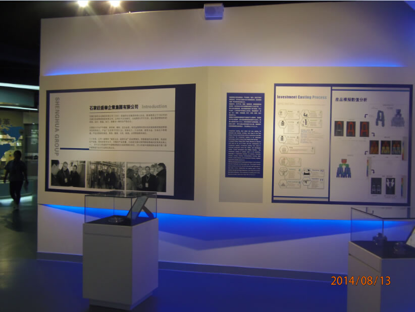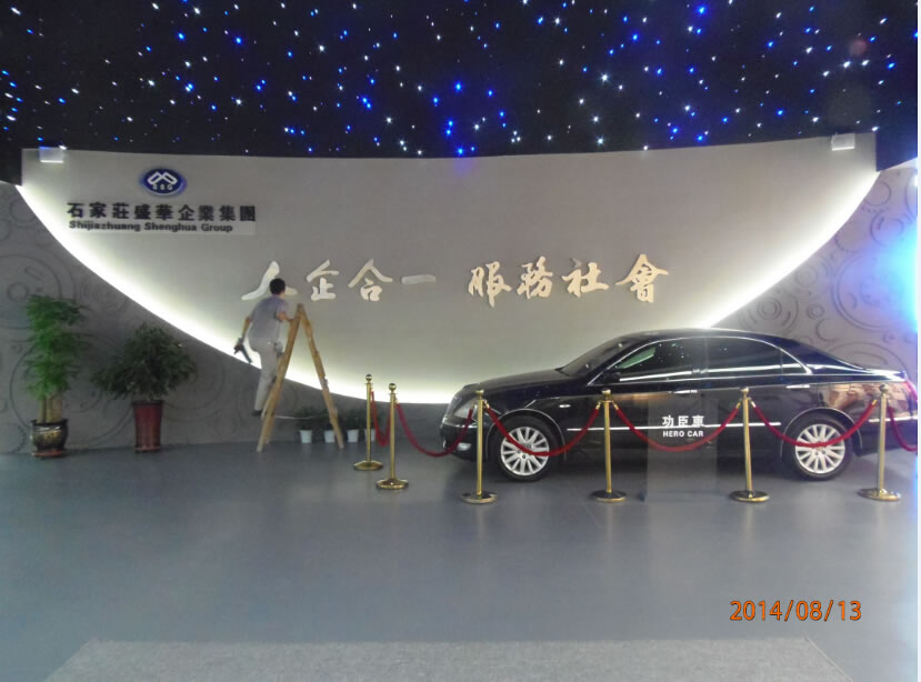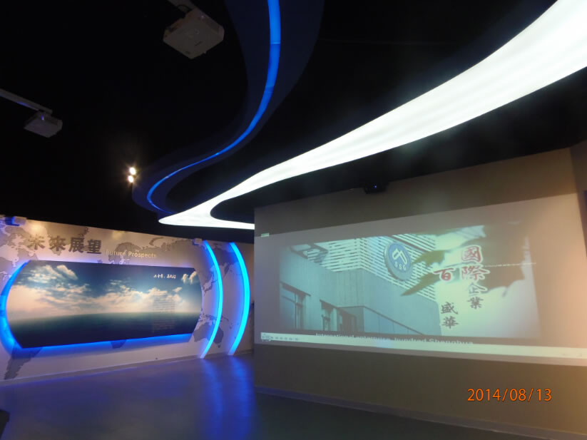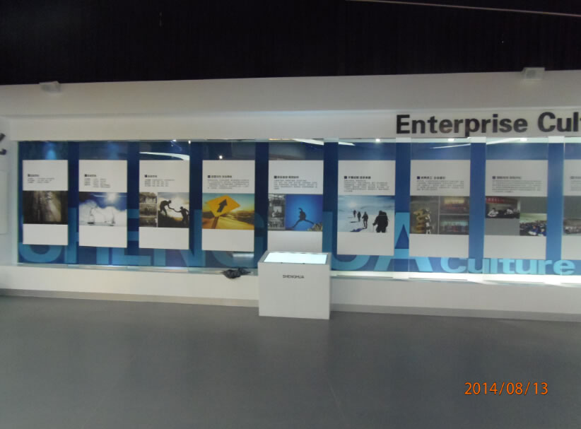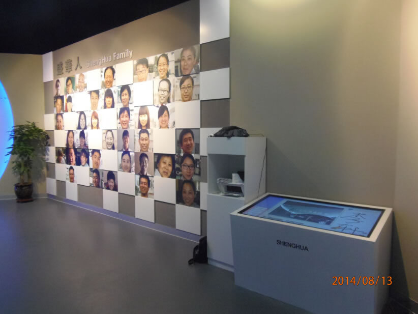 石家莊盛華企業集團企業展廳聲光電系統:領導關懷55寸液晶觸摸屏一體機、電子簽到、拍照留念、虛擬翻書、投影機互動、投影機融合、講解音響、展廳背景音樂等。